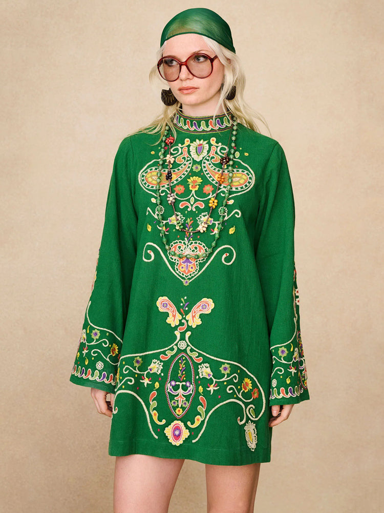 Embroidered Lime Mini Dress